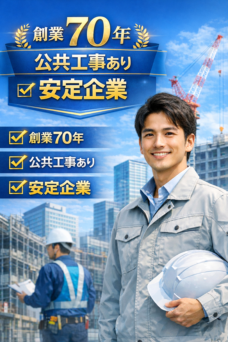 仕事内容 「2級土木施工管理技士の経験を地域で活かしませんか? ★年収525万円〜600万円(賞与年2回・残業少なめ) ★施工管理中心で書類作成・現場調整は無理なく対応可 ★埼玉県深谷市/転勤なし/長期出張なし ★駅チカ・車通勤OK・アットホームな職場」 【仕事内容】 ✔ 2級土木施工管理技士としての現場管理(公共・民間工事) ✔ 工程・安全・品質管理(担当現場は深谷・埼玉エリア中心) ✔ 協力会社・職人との打ち合わせ ✔ 施工写真・書類の整理・報告書作成 ✔ 将来はリーダー・幹部としての役割も可能 【ポイント】 ・過度な掛け持ち・無理な残業なし(働き方重視) ・書類業務はサポートあり(苦手でも安心) ・公共工事中心で安定した案件 【会社の特徴】 公共工事(深谷市内・埼玉県内)道路工事・水道工事・下水工事・ 中堅ゼネコン(一次下請け)がメインとなります。 1952年土木・建築・鋼構造物業として創業。地元では歴史のある会社です。