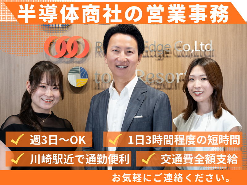 仕事内容 ✨新着求人✨ 半導体/電子部品の調達/購買代行をメインとした 営業サポートをお願い致します。 社内外の関係者と連携しながら、 スムーズな受発注・納品を支える 重要なポジションです。 ◆受発注データの入力・管理◆ 専用システムを使って受発注内容を入力。 入出荷漏れや数量ミスのチェックも行います。 ◆納品チェック・発送対応◆ 商品到着時の検品や納品確認を行い、 必要に応じて発送手配を行います。 ◆書類作成・データ管理◆ 見積書・請求書などの作成をサポートし、 顧客情報を正確に管理します。 ◆電話・メール対応◆ 仕入先やお客様からの問い合わせ対応、 スケジュール調整などを行います。 ◆その他営業サポート全般◆ 営業担当のサポートとして、 庶務業務や社内連携を行います。 ―――――――――――――― ⭐ 会社紹介⭐ 2018年に設立し、 半導体・電子部品の 貿易業務を行なっております。 私たちの強みは 成長を加速するフラットな環境。 川崎を拠点に、 グローバルな視野で挑戦する集団。 風通しの良いフラット組織で アイデアを活発に議論し、 革新的なプロジェクトを 次々と生み出しています。 私たち経営理念は、 Mission 「トナリ」に新たな感動を Vision エレクトロニクスの力で、 大切な人の「トナリ」にいられる時間を増やす Value 明るく素直に、やり抜こう 半導体ソリューションを軸に 世界を進化させ、あなたが 大切な人の「トナリ」に いられる時間を増やします。 そのビジョンに共感してくれる 仲間を探しています! ―――――――――――――― こんな方におすすめ 20~40代の方が中心に活躍中! 子育てが落ち着いた方も大歓迎です。 短時間勤務で家庭との両立も可能。 また、インターンを希望する学生さんも アルバイトとしてスタートできます。 実務を通して経験を積みたい方に最適です。