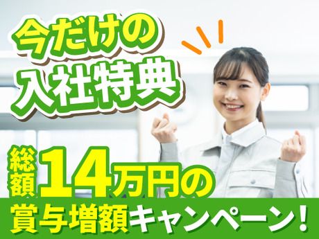 【保険制度】 雇用保険、労災保険、健康保険、厚生年金 待遇・福利厚生 【福利厚生】 【待遇・福利厚生】 ・各種社会保険完備(健康・年金・雇用・労災) ・残業・休日出勤手当あり ・交通費支給(上限5万円迄) ・制服一式貸与 ・食事スペースあり(弁当持込可) ・工場食堂あり(1食あたり500円程度) ・自動販売機、休憩室あり ・屋内原則禁煙(喫煙スペースあり) ・寮完備 ・配属先・寮の選択は出来ません ・有給休暇あり ・工場駐車場(無料) ・髪色・髪型自由 ※各規定有 【昇給・賞与】 賞与あり(7月・12月) 1回につき30,000円、年間合計60,000円。 昇給制度あり(年1回) ※基本給上限20.5万円 ※各規定有 【入社特典】 <2026年3月末までご入社の方限定キャンペーン> ☆賞与増額特典 賞与時(7月・12月)に7万円×2回、 計14万円を支給いたします! 7月賞与:3万円+7万円で計10万円 12月賞与:3万円+7万円で計10万円 総額で20万円となります♪ ※各規定有 【MOCP-1】