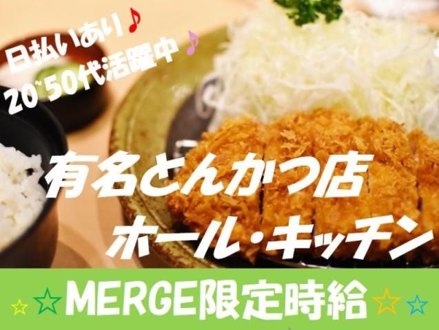 早い者勝ち!!【とんかつ屋さんのホールスタッフ】時給1500円♪日払いOK♪♪20~50代活躍中! 株式会社MERGE とんかつ屋さんのホール・キッチンスタッフ 伝統と革新を融合させた「食」のおもてなしを 提案し続ける企業様で飲食店・販売店を 国内外2,000店舗以上も展開されており、 今後も安心です☆ 「家の近くで探したい」 「長く続けられる仕事がいい」 「今までの経験を活かしたい」 など、ご希望に合わせてご提案可能です。 お気軽にお問い合わせください!