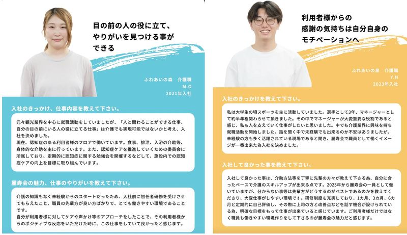 選考プロセス 【STEP1】応募 「応募画面へ進む」より 必要事項を入力。 たった1分で完了します。 ▼ 【STEP2】日程調整 担当者よりお電話、 またはメールにて ご連絡いたします。 現在お勤め中の方も、 面接日時は柔軟に 調整しますので、 お気軽にご相談ください。 ▼ 【STEP3】施設見学・面接(1回) 「本当に営業はないの?」 「職場の雰囲気は?」 まずはあなたの目で 確かめてください。 履歴書だけでは 分からないあなたの 「経験」や「想い」を お聞きしたいので、 リラックスして お越しください。 ▼ 【STEP4】内定・入社 面接から7日以内に 結果をご連絡します。 入社日はご希望を考慮し 決定いたします。 ━━━━━━━━━━━━━━━━━━━━ ✅面接は1回のみ! ✅施設見学のみも大歓迎! 「まずは話を聞いてから 応募するか決めたい」 という方も、 ぜひお気軽にご連絡ください。 ━━━━━━━━━━━━━━━━━━━━ ⭐施設見学も随時実施しております! <更に詳しい内容はHP、動画参照ください> ⭐HP https://www.reijukai.or.jp/ ⭐施設紹介動画 https://www.youtube.com/watch?v=0od9Elr2wtk&t=88s ※リンクではないので、コピーしていただき 検索していただけると幸いです。