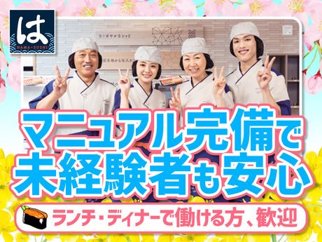 職場環境 【従業員構成】 *はま寿司には色々な働き方をしているスタッフがいます。 ・家事の合間や日中の空いている時間で働きたい主婦(夫)の方 ・お子様が大きくなって仕事復帰をしたいミドルの方 ・がっつり稼ぎたいフリーターさん ・授業や部活、サークルが終わってから働きたい学生さん など 毎日のスキマ時間でも働けるのでブランク明けで長時間勤務が不安な方や家事・育児・学校・趣味との両立したい方に好評です。 スキマバイトにもうってつけです! もちろんガッツリフルタイムで稼ぐことも出来ますよ! 【職場の雰囲気】 にぎやかな職場 協調性がある 立ち仕事 アットホーム お客様との対話は多い 長く働ける 力仕事が少ない 自分の都合に合わせやすい 知識、経験不要