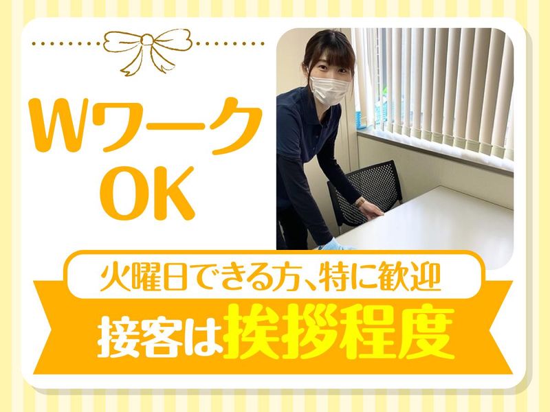 仕事内容 +・・・・・・・・・・・・・・・・・・・・・・・・・・・・・・・・+ \週1日家事の延長で働ける♪/ 火or金曜日勤務できる方大募集! 身体を動かしながら働けるから 気分もスッキリ♪運動不足解消にも◎ 短時間勤務だから両立出来ます♪ ★扶養内勤務・Wワーク・副業OK★ +・・・・・・・・・・・・・・・・・・・・・・・・・・・・・・・・+ ≪具体的な業務内容≫ ✅エントランスや階段の清掃 ✅玄関周りや屋上の清掃 ✅トイレ清掃 ✅ゴミ回収 ✅喫煙所清掃 など 拭き・掃き掃除・ゴミ回収などをお任せ◎ 「コツコツ働きたい」 「きれいなオフィスで働いてみたい」方大歓迎! 程よく体を動かすことが出来ます♪ 働きながら運動不足を解消したい方や、 体を動かすことが好きな方にピッタリ♪ 空いた時間で身体を動かしながら 収入UPしませんか? …………………………………… ✨家事の延長で働けます!✨ …………………………………… 清掃に使う道具で特殊なものはなく、 作業自体もとても簡単なので ふだんのお掃除が得意な方であれば 清掃業未経験の方も大歓迎◎ …………………………………… ✨20代~60代まで活躍中✨ …………………………………… 子育てが落ち着いて復職した主婦さんや 定年後のお小遣い稼ぎで働くシニアまで 幅広い年代の方が活躍中♪ 別のお仕事との掛け持ちもOK! ご家庭の都合や本業、私生活に合わせて 無理なく続けられるお仕事です◎ …………………………………… ✨お掃除のスキルUP✨ …………………………………… 難しい作業はありません♪ 素早くキレイにするコツなど プロの技を覚えられるので 自然とお掃除のスキルもUP♪ キレイになったオフィスを見ると とっても気持ちが良くて 達成感もあります♪ …………………………………… ✨この仕事のここが魅力✨ …………………………………… ・20~60代の幅広い年代の方が活躍できるお仕事! ・Wワーク、副業にもピッタリ♪ ・未経験OK!家事の延長で働けます! ・接客なし!コツコツ、モクモク作業が好きな方にぴったり! ・家庭や本業・プライベートとの両立可能!