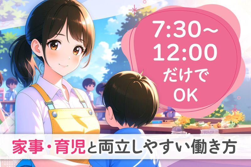 【勤務時間】 7:30〜12:00 ✅上記時間のうち、週3日、1日3時間からの勤務でOKです! ※8時~勤務できる方・土曜勤務できる方優遇 週20時間程度の勤務でもOK!短時間勤務をしたい方、平日のみ、午前中のみお仕事を探している方はぜひご応募ください。 ■勤務時間に応じて、法定に基づいた休憩時間を取得できます。 【残業はほとんどありません】 業界でもトップクラスの休日数や福利厚生が充実している当社。 残業ほぼなしのため、ムリなく、ご自身のペースで働けます。