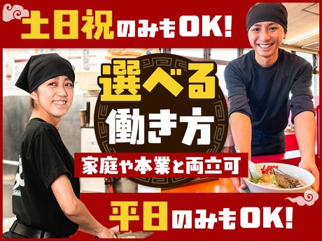 仕事内容 10~翌3時の間で特に9~15時できる方歓迎!平日のみ・土日祝のみOK! \【シフトは1ヶ月ごと】主婦さん多数活躍中! / 「この週は〇曜日も休みたい」など・・・ お子さんの予定や家庭の都合にも柔軟に 対応します。シフトは1ヶ月ごとの提出で、 固定シフトもOK! 毎月中旬までに希望を出せば、柔軟に調整します。 * \週1日~・1日3h~OK!時間・曜日応相談/ 主婦・学生・フリーター・Wワーカー活躍中!  ̄ ̄ ̄ ̄ ̄ ̄ ̄ ̄ ̄ ̄ ̄ ̄ ̄ ̄ ̄ ̄ ̄ ̄ ̄ ̄ ̄ 「9~15時」「10~14時」などOK! 子どもの送迎に合わせて働く子育て中ママや 子育てが一段落した主婦などが活躍中です! 子どもの急な発熱などによるお休みにも対応! 学校や本業が休みの土日祝だけ働く 学生・Wワーカー活躍中! 週5日しっかり働くフリーターも活躍中! * << 土日祝は時給100円UP >> 通常時給1200円!土日祝は時給1300円! スキマ時間や短時間にサクッと高収入を 得たい方にピッタリ!柔軟なシフト体制で、 自分の都合に合わせて無理なく働けます。 * 【まかないあり!山岡家好き必見】 SNSやTVで話題沸騰中の山岡家の ラーメン(1120円までのメニュー)が なんと”330円”で食べられる! もちろんラーメン以外に ギョーザやチャーシュー丼などもあります! * 【主な仕事内容】 ラーメン店での ホール・キッチン業務をお任せします! オーダーは食券制なので簡単! お客様の案内時に確認すること3点のみ! [1]麺の硬さ [2]味の濃さ [3]油の量 ※面倒なレジ作業もありません! 初心者の方でも始めやすいのがポイント! 【ライフスタイルに合わせて働けます】 家事・育児・学業・他の仕事と両立しながら 好きな時間に働けると大好評! ガッツリ稼ぎたいフリーターも、もちろん大歓迎! 『週1日~OKで、子どもの予定にも合わせやすい』 『学校行事や私用でのお休みもしっかり取れる』 『深夜時給で効率良く稼げるので収入も安定』 …など、プライベートと無理なく両立している 主婦・学生・フリーターが多数活躍しています! 10代~50代・60歳以上まで 幅広く在籍しているのが丸千代山岡家の特徴! 若手~中高年・シニアまで応援しています! 【未経験者も安心*ブランクOK】 先輩スタッフがイチから丁寧に教えるので、 初バイト・パートも安心! 経験・年齢不問!やる気があればOKです! 【経験者ももちろん歓迎】 レストラン・ラーメン店・居酒屋・ カフェ(喫茶店)・スーパー・ドラッグストア・ アパレルなどの経験者は、即戦力として活躍可能! 今までの経験を生かしてみませんか? 【株式会社丸千代山岡家*全国190店舗以上展開】 <東証スタンダード上場企業の安定基盤> 《設立》1993年(創業30年) 《従業員数》6522名(内正社員654名) ※2025年1月31日現在 《事業内容》 「ガツンときて、くせになる」 ラーメン店山岡家運営 《ホームページ》 https://maruchiyo.yamaokaya.com/