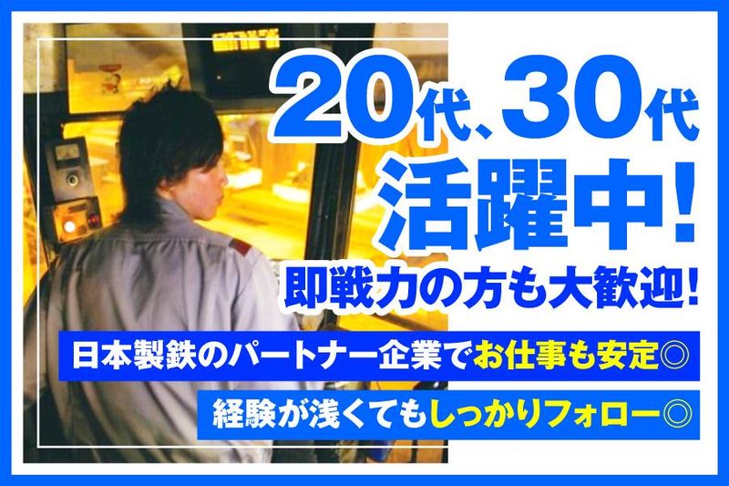 仕事内容 *大手・日本製鉄のパートナー企業◎ *若手から大手企業の恩恵を受けられる! *手に職を付けてキャリアアップ可能◎ 日本の産業を支える製鉄業。 総合力世界No.1の鉄鋼メーカー 「日本製鉄グループ」のパートナーとして 社会の発展に貢献している当社。 そんな当社にて、 製造ラインオペレーターを募集。 経験の浅い方やブランクのある方もOK! 一生モノの安定したキャリアを 実現できます! ‐‐‐‐‐‐‐‐‐‐〈具体的な仕事内容〉‐‐‐‐‐‐‐‐‐‐‐ 製鉄生産ラインのオペレーターとして、 クレーンオペレーター・玉掛、製品管理業務 をお任せ。 仕事は1組4人のチームで行います。 その日の状況に応じて クレーン操作や切断業務など それぞれのポジションについて 仕事に取り組みます。 <ある日の流れ> 1.出社後、15分ほど始業ミーティング 2.それぞれのポジションに就いて業務開始 3.昼休憩はみんなと談笑 4.15分ほどミーティングをして退勤 (定時に帰る人も多くいます!) ‐‐‐‐‐〈大手グループ企業で長期安定〉‐‐‐‐‐‐ 《*年収例*》 ・25歳:450万 (月給20万円+諸手当+賞与年2回) ・30歳:550万 (月給25万円+諸手当+賞与年2回) ※経験や能力を考慮します。 【積極的にキャリアアップ可能】 経験を積んでいけば、 ご自身の希望によっては どんどんキャリアアップしていただけます。 資格を取得すれば、資格のレベルに応じて 報酬金も出しますよ。 【充実した待遇】 住宅手当などの手当や賞与年2回など 福利厚生も充実しているので 長期的に安定して働きたい方に ピッタリな環境です。 ‐‐‐‐‐‐‐‐‐‐〈経験が浅くても安心〉‐‐‐‐‐‐‐‐‐‐ 【充実のサポート体制】 チームに分かれての作業になりますが、 どのチームもチームワークバツグン。 新人さんには、先輩が横について サポートすることはもちろん、 慌てないポジションに配置するなど 働きやすい環境を整えています。 【経験が浅い、ブランクがある方も安心!】 研修所がしっかり完備されており、 業務に不安がある方も安心して スタートできるようにサポート! 実際に業務を始めてからも、 チームみんなでフォローし合っていますので 安心して業務に取り組めます。