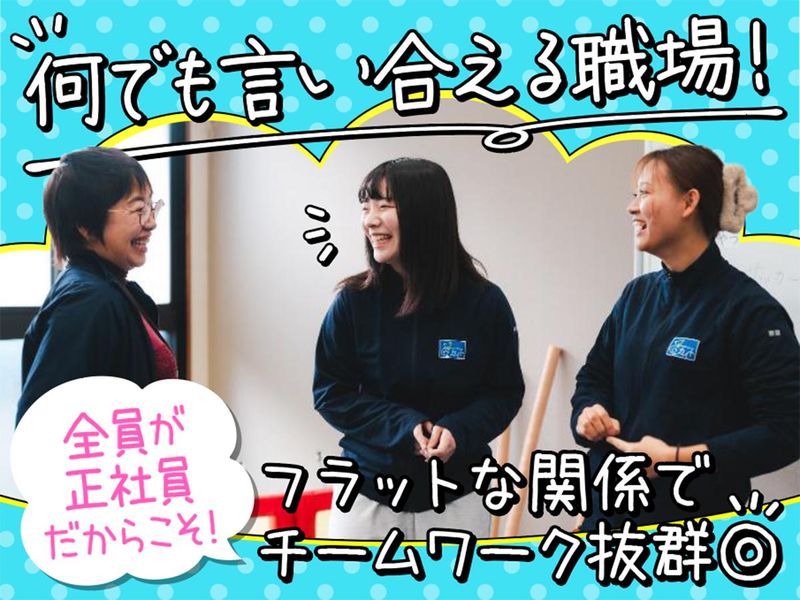 仕事内容 ╭───────────・⭐・・─╮ 定員増加による増員募集です! チームワークを大切にできる方歓迎! ╰─・・⭐・───────────╯ 「心理学科」「社会福祉学科」などを 専攻していた方大歓迎♪ 「実務未経験からチャレンジしたい」 「もう一度福祉に携わりたい」 そんな方を応援します❗ ・ ┈┈┈┈┈┈┈┈┈┈┈┈┈┈┈┈ ・ ✅残業ほぼなし! 季節行事も勤務時間内で完結✨ ※残業月0〜1時間(2025年度実績) ✅人間関係良好! 全員正社員で助け合える職場✨ ✅持ち帰り仕事ゼロ! プライベートも充実間違いなし✨ ・ ┈┈┈┈┈┈┈┈┈┈┈┈┈┈┈┈ ・ <業務内容> 発達障がい・知的障がいのある 子どもたち(小1〜高3)の 放課後等デイサービススタッフです。 <1日の流れ(平日)> ⏰10:00 出社・朝ミーティング ⏰10:30 午前の準備・事務作業 (教材準備、記録) ⏰14:00 送迎 ⏰14:30 子ども達が来所 (おやつ、自由時間) ⏰15:00 学習補助 (学校・タブレット教材) ⏰16:00 療育 (STT、運動、工作、外出など) ⏰17:30 送迎・掃除・記録・振り返り ⏰19:00 退社 ★基本定時退社! ミーティングが長引いても 19:10には終了します! 記録などのデジタル化が進んでおり、 効率よくお仕事できるのが魅力です♪ ★定員は13名に増加予定で、 毎日5~6名が出勤します。 ※スタッフを先に増やす予定なので 安心してください! ★送迎は全員が担当! 最初は同乗研修があり、 慣れるまで軽自動車で練習できます。 ・ ┈┈┈┈┈┈┈┈┈┈┈┈┈┈┈┈ ・ <転職先はココ!働きやすさに自信あり> ✋チームでお仕事できる環境! 送迎はローテーション制で安心◎ 保護者さまの対応で困ったことがあれば 主任や管理者がスグフォローします! 入社時のOJT研修(1~2ヶ月)や 座学研修など教育体制も整っており、 実務未経験から入社したスタッフも 在籍しています。 ✋人間関係良好! 「前職では相談できずに抱え込んでいた」 そんなスタッフがここでは 「なんでも相談しやすい!」と 笑顔で働いています。 全員が正社員だからこそ フラットな関係を築きやすく、 チームワーク抜群です◎ 2024年、2025年度の実績ですが、 離職者ゼロです♪ ✋残業&持ち帰り仕事なし! ★月平均残業:0〜1時間(2025年度実績) ★年間休日120日 (日曜+平日1日の完全週休2日制) ★有給:全員が取得しやすい雰囲気♪ ★持ち帰り仕事ゼロ(2025年度全員該当) ★記録作成:タブレット・PCで30分 「原則なし」ではなく 本気で取り組んでいます。 ・ ┈┈┈┈┈┈┈┈┈┈┈┈┈┈┈┈ ・