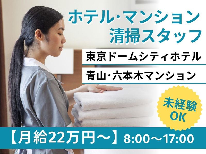 仕事内容 ✨清掃経験者大歓迎!✨ ✨週休2日制で安定勤務✨ ✨日勤専従!ワークライフバランス◎✨ *.·┈┈┈┈┈*.·┈┈┈┈┈*.·┈┈┈┈┈*.· ホテル・高級賃貸マンションの 清掃をお任せ! 〖お仕事内容〗 ⏩メイド管理 ⏩客室点検 ⏩清掃管理 ✅清掃経験者大歓迎! 必要なことはしっかり教えますので ブランクがあっても安心です♪ <勤務地について> まずは水道橋のホテルで勤務し、 ゆくゆくは青山・六本木のマンション清掃も お願いする場合があります。 ⟡.· ┈⟡.· ┈⟡.· ┈⟡.· ┈⟡.· ┈⟡.· ┈⟡.· ┈⟡ ✨\当社について/✨ 昭和40年に創業し、 実績を積み上げてきた安定企業です。 そのため働く環境にも自信がありますので、 経験を活かしたい方やブランクから 復帰したい方などぜひご応募ください! ⟡.· ┈⟡.· ┈⟡.· ┈⟡.· ┈⟡.· ┈⟡.· ┈⟡.· ┈⟡