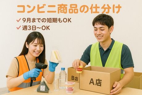 【コンビニ仕分け作業】◎週3日~OK ◎昼13:00~の勤務