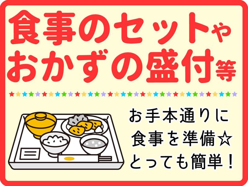 仕事内容 _____________ ✥ 「ありがとう」が嬉しい、調理補助スタッフ募集 ✥  ̄ ̄ ̄ ̄ ̄ ̄ ̄ ̄ ̄ ̄ ̄ ̄ ̄ 無資格・未経験者歓迎! 家事の延長でできる作業ばかり!未経験の方でもすぐに活躍できます! 仕事内容詳細 特別養護老人ホーム内の厨房で、 ・料理の盛り付け ・配膳 ・洗浄機を使用した食器洗い などのサポート業務をお願いします◎ 「料理が好き」「誰かの役に立ちたい」という気持ちを活かせる、やりがいのあるお仕事です! ご自身の健康管理やご家庭での調理にも役立つスキルが自然と身につきます。 「子育てが落ち着いたから調理業界に復帰したい」「資格はあるけどブランクが・・・」などなんでもご相談下さい! アットホームな職場なので、沈黙の中コツコツ、黙々というより、和気あいあいとした雰囲気の中で働いて頂けます! 久々のお仕事復帰の方、未経験の方はもちろん、職場が変わるって誰でも緊張や不安があると思います。 でもここならきっと、その緊張や不安はスグなくなって、楽しく働いて頂けるはず。 「今の生活にちょっとプラスしたい」そんな思いがある方、ぜひご応募ください! 特別養護老人ホーム 関宿ナーシングビレッジ ~~~~~~~ ■東武野田線「川間駅」より車で20分 ■「川間駅」発、はやま工業団地、または、関宿城行きバスも利用できます。 (二川小前バス停下車) ★車・バイク・自転車通勤OK! 給食委託業界のリーディングカンパニー! ~~~~~~~ 株式会社グリーンハウスは、給食委託業界のリーディングカンパニーとして、 会社、工場、学校、病院、老人ホームなどの食堂運営、給食提供の業務をはじめ、 レストラン・デリカショップ運営、ホテルの経営受託などを一手に担い、国内のみならず海外にも事業展開を拡げている安定企業です。 そのグリーンハウスのヘルスケア事業を創業より70年以上担ってるのが、当社「株式会社グリーンヘルスケアサービス」です。 業界屈指の当社であれば、幅広い専門スキルや資格取得を目指すことも可能です。 スタッフさんのことを第一に考え、働きやすい環境づくりにも力を入れているので長く安定して活躍いただけます。