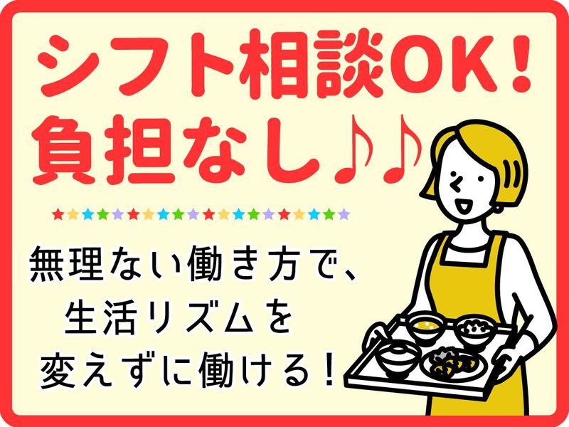 求めている人材 <未経験大歓迎!> 初パートもOK! ~営業所で活躍中のスタッフについて~ 20代~60代の若手から中高年・ミドル・シニアの方まで幅広い世代のスタッフが在籍! ~こんな方にもピッタリ!~ カフェ(喫茶店)やイタリアン、フレンチ、和食・洋食、中華レストランでの勤務経験がある方 居酒屋などの飲食店で調理スタッフや調理補助、調理師の経験がある方 食品工場(肉・鮮魚・野菜・惣菜)での盛り付け・調理・材料カット・洗い場経験がある方 企業・社会福祉施設・病院・クリニック・学校(小学校・中学校・大学・専門学校等)・ 幼稚園・保育園・小規模保育園・企業内保育・福祉業界 (介護付き有料老人ホーム・住宅型有料老人ホーム・サービス付き高齢者向け住宅・グループホーム・ケアハウス・特別養護老人ホーム・介護老人保健施設・介護医療院(介護療養型医療施設))での調理・献立作成経験がある方 Uターン・Iターン希望の方 新卒・第二新卒での就業経験、正社員・アルバイト・パートの経験がある方 子育て卒業により社会復帰・職場復帰・ブランク復帰をお考えの方 ママさんスタッフ・パパさんスタッフ・主婦(夫)パートが働いている職場をお探しの方