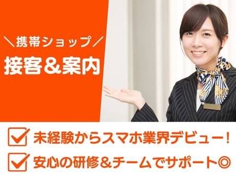 仕事内容 \ここがポイント/ ★未経験からスマホ業界デビュー♪ ★安心の研修&チームでサポート◎ ★接客が初めてでも丁寧に教えます! *・。・。*・。・。*・。・。* <仕事内容> \携帯ショップでの接客スタッフ♪/ 店舗に来られたお客様の対応業務です。 スマートフォンやプランをご案内します。 「どの機種がいい?」と聞かれたら、 ご希望を聞いてピッタリの機種をご提案♪ 「料金を安くしたい」という方には、 利用状況に合ったプランをご紹介します。 その他、スマホの操作に関するご相談や 故障時の受付、料金のお支払い対応もあり♪ 特別なスキルは必要ありません◎ 研修と先輩のサポートで成長できます! チームで協力する風土が根づいており、 一人で抱え込む心配もありません♪ 段階的に学べる仕組みが整っているので 未経験でも安心して始められます◎ *・。・。*・。・。*・。・。*