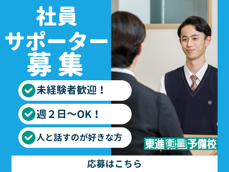 仕事内容 ⭐予備校の社員サポートのお仕事です!  ̄ ̄V ̄ ̄ ̄ ̄ ̄ ̄ ̄ ̄ ̄ ̄ ̄ ̄ ̄ ̄ ̄ ̄ 【具体的な仕事内容】 ✅高校生の生徒さんの簡単な管理 └PCでの授業進捗状況管理・ 生徒個人ファイルの保管や整理 ✅生徒指導 ✅学習面談・面談対応の補助 ✅受付業務 ✅模試運営の補助 ★-★ 大学生・短大生・主婦(主夫)が活躍中! 生徒とのコミュニケーションを 大切にしてくれる方なら大歓迎です♪ 週2日~働ける方・土日勤務可能な方大歓迎◎ ★-★ 学習塾の募集ですが、 今回は授業を行う講師の採用ではなく、 生徒(高校生)の進路サポートや面談など、 生徒に関わりつつ、 運営サポートを行うスタッフの採用です。 教育経験や指導経験は必要ありません。 生徒や保護者の気持ちに寄り添って 目標に進めるようにするための アドバイザーのような業務ですので、 教育に関心があるけど講師はハードルが高いかも… と不安な方でも、しっかりと業界に関わる ことができるお仕事です。