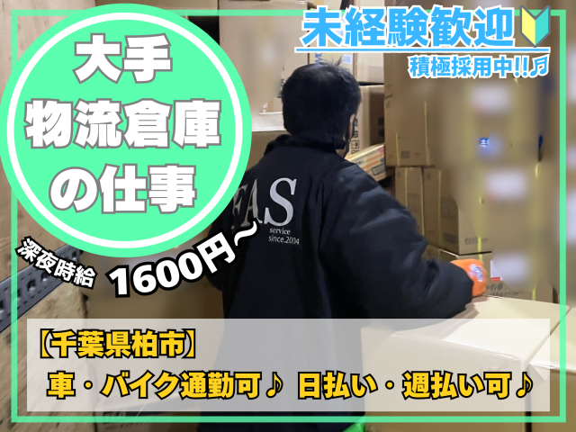 【柏市/車通勤可】簡単仕分け★夜勤/20~50代活躍中