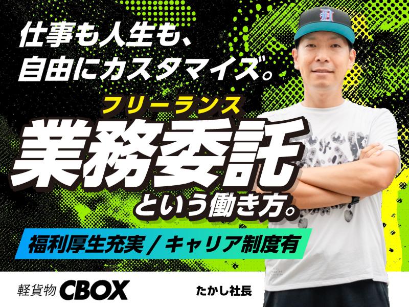 アピールポイント: --- (以下は本契約時の弊社の特徴です) Customize Your Life しごとを、人生を、自由にカスタマイズしよう! * ⭕→自由な働き方ができるのがCBOX。 * ❌→根性、きつい、丸投げ、長時間 * フリーランスの最大のメリットは、自分の人生をカスタマイズできること。 * 宅配のマイナスイメージをCBOXが全て変えていきます。 軽貨物ドライバーは会社選びで9割決まる! 軽貨物ドライバーの求人は多いが、見分け方が難しい。 なんかうまい話ばかりの求人多いけど、盛りすぎてない?実際どうなの? 仕組み、環境、相性、ビジョンで選ぶのが正解! 自分に合う環境さえ見つかれば、軽貨物ドライバーは最高の仕事です。 時給換算で2000〜3000円(本契約時)。 * 同じコース、同じお客さんだから、 * やればやるほど、慣れれば慣れるほど * 生産性が上がり、労働時間が減り、時給が上がります。 とことんフェアに。CBOXはこれまでの軽貨物業界の悪癖を壊していきます。 * とことんフェアな契約内容↓ * 主要AI(Gemini、ChatGPT4o、Claude)と、弁護士による診断93点 * (↑透明性、信頼性、契約フレンドリー度、心理的安全性の4項目) 新人さんが辞めない、他社にない仕組みが凄い! * 基本が身に付くいて自信が持てるまで、無制限の時給保証 * 新人さん用Youtube動画教材でどこでも何度でも学習できる * あなたもチャレンジ、スマホで配達クイズ! * 全業務可視化のマインドマップで心理的安全性確保 * BBQお兄さんのおもしろ同乗研修 * 転職者も安心の日払い制度 CBOXは『人=あなた』に先行投資します。 還元や補償が嬉しい * 車両維持コストの最大90%を会社負担 * ホリデーシーズンのバケーション手当 * 会社経費での食事会がよくある 社長のビジョンや理念が凄い 自身が初心者の時に、ひどい環境で苦しい思いをしたので、それを自社スタッフにはさせまいという、社長の熱い気持ちがあります。 大きな経験や深い知識があるから、なんとなくやってる会社とはビジョンが桁違いに大きい。