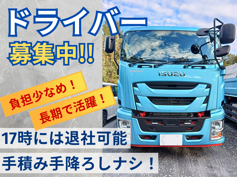 仕事内容 \「大型免許」を、家族や自分のために使いませんか?/ 「稼ぎたいけど、休みも欲しい」 「もう手積みは体にこたえる…」 そんな方にこそ選んでほしい環境です。 当社は、土日祝休みの完全週休2日制。 さらに「手積み・手降ろし一切なし」。 残業も少ないので、17時には帰宅して 趣味や家族との時間を取れるとの声も。 === ✅仕事内容: 【1日の走行は30km圏内。決まったルートを往復する安心感】 大型ダンプ(10t)を運転し、建設現場と自社の中間処理工場を往復する業務です。 ◆体への負担少なめ 積み込みはすべて重機。あなたは運転席で安全を確認するだけです。 力作業がないから、年齢を重ねても「現役」を続けられます。 ◆自社工場の強み 行き先が自社工場なので、面倒な手続きはほとんどありません。 だからこそ「残業ほぼなし」で17時退社が可能です。 ◆近距離配送のみ 長距離運転や車中泊、深夜配送は一切なし。 体調管理もしやすく、女性やシニアの先輩も「これなら続けられる」と笑顔で活躍しています。 東証プライム上場グループの安定した基盤のもと、 腰を据えて長く働ける環境です! ブランクや未経験の方は先輩が同乗する 「横乗り研修」からスタート! 慣れるまでサポートしますのでご安心ください。 === ✅こんな方が活躍中: ◆「家族との時間を最優先したい」ドライバー経験者 ⇒土日祝は完全にお休み。お子様の行事等で調整したいなどご相談ください ◆「安定した会社で、長く働きたい」という方 ⇒東証プライム上場グループで安定して働けます ◆「運転は好きだけど、重労働は卒業したい」という方 ⇒「手積み・手降ろしなし」の快適さを、ぜひ実感してください ◆大型免許さえあれば、ダンプ未経験でも大歓迎! ⇒紹介で入社する人が多いほど、人間関係が自慢の職場! 産休・育休から復帰したママさんドライバーも活躍中!