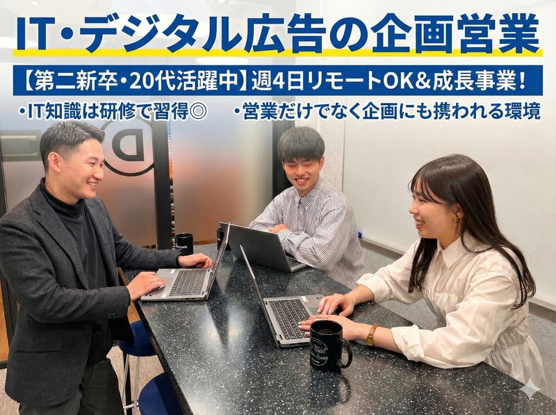 仕事内容 \\★★この求人のポイント★★// =================== ⏩週4日リモートワーク可能! 現在週1日のみ出社◎ ⏩第2新卒・20代の若手が活躍できる環境! ⏩営業だけでなく企画にも携われる◎ ⏩前年比売上120%増の成長事業! ⏩OJTや研修プログラムが充実♪ ⏩早期に成功体験を得られる商材あり◎ =================== ✅お仕事内容 ・・━━・・━━・・━━・・━━・・ メディア事業部にて、メール広告を 活用したソリューション提案を行い、 販売代理店への営業活動を 担当していただきます。 同世代の20代メンバーが中心のチームです。 IT知識は入社後に研修で身につけられます。 <Yahoo!ダイレクトオファー詳細はこちら> https://ydoteam.com/ ✅具体的な仕事内容 ・・━━・・━━・・━━・・━━・・ ■お客様の課題を解決するプランの提案 「もっと集客したい」などの 悩みを持つお客様にメール広告を使った 解決策をご案内します。 最後は契約の手続きまで担当します。 ■パートナー企業(代理店)のサポート 当社のサービスを販売してくれる 代理店さんと定期的に打ち合わせを行い、 「どうすればもっと売れるか」を 一緒に考えたり、勉強会を開いたりします。 ■こんな機能があったらいいなのアイデア出し お客様の声をヒントに、 「もっと使いやすくするには?」 「新しい商品を増やせないか?」 などのアイデアを出し、 開発チームと一緒にサービスを育てます。 |◤ 活躍している先輩の声 ◢|  ̄ ̄ ̄ ̄ ̄ ̄ ̄ ̄ ̄ ̄ ̄ ̄ ̄ ̄ ̄ ̄ ̄ ̄ ̄ ・中期的なキャリア形成に向けて、 目標設定からしっかりサポートします。 ・職種や役職の垣根がない、 相談しやすいフラットなチームで、 意欲的なメンバーが集まっています。 ・入社初年度から裁量を持って業務に 取り組めるため、 成長を実感しやすい環境です。 \ 入社3年目・ハイパフォーマーの2人 / タイプは違いますが、それぞれが 「自分らしく」成果を上げています! 【Aさん20代女性 前職:CM制作会社AD】 CM制作会社でADを担当していた前職から 営業職へ未経験で転身。 「積極性」とAD時代に培った 「丁寧な仕事ぶり」が強み。 職種や役職の垣根がない相談しやすい フラットなチームで、意欲的なメンバーと 刺激を受けながら、入社3年目で 目覚ましい成果を上げています。 【Bさん30代男性 前職:化学メーカー営業】 前職は化学メーカーでの部品営業。 「既存商品のみの提案に限界を感じ、 顧客の要望に十分応えたい」「商品企画に 携わりたい」という想いで転職。 そのチャレンジ精神が評価され、 入社初年度から裁量を持って業務に 取り組める環境で成長。 中期的なキャリア形成に向けた 目標設定のサポートも活かし、入社3年目で ハイパフォーマーとして活躍中です。 ✅入社後の流れ ・・━━・・━━・・━━・・━━・・ 入社後1ヶ月間は毎日出社いただき、 先輩社員がマンツーマンでOJT研修を実施 します。 営業手法は全てマニュアル化されている ため、営業経験があれば比較的早く キャッチアップいただけます。 独り立ち後は基本的にリモートワークが 可能で、出社頻度は週1,2回程が多いです。 チームでのコミュニケーションを 大切にしながらも、 個々の働き方を尊重する環境です。 ・・━━・・━━・・━━・・━━・・━━・・━━・・ ✨シナジーマーケティングについて✨ ・・━━・・━━・・━━・・━━・・━━・・━━・・ 会社について詳しく知りたい方はこちら! https://speakerdeck.com/synergymarketing/sinazimaketeinguzhu-shi-hui-she-cai-yong-pitutizi-liao?slide=40