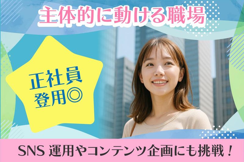 求めている人材 。:+.°*――――――――――――*°.+:。 未経験からのチャレンジ大歓迎 発信力・コミュ力が活かせる職場 。:+.°*――――――――――――*°.+:。 □■□■□■□■□■□■□■□ 応募に必要な条件 □■□■□■□■□■□■□■□ ◎ SNSを日常的に利用している方 コンテンツの発信は未経験でもOK ◎ 文章を書くことが好き、 もしくはライティングに興味がある方 ◎ 人とやり取りをするのが好きな方 ◎ チームで協力しながら働くのが得意な方 ☆.::・’° こんな方はさらに歓迎 °’・::.☆ ・InstagramやTikTokの発信経験 (個人アカウントでも可) ・事務職や営業サポートなどの実務経験 ・ライティング/校正の経験 ・採用や人事系の業務に興味がある方 ◇─◇ 採用担当からのメッセージ ◇─◇ このポジションは「人事」だけでなく、 「発信」「マーケティング」 「コンテンツ制作」など、 さまざまな力を身につけ “成長していけるポジション”です。 はじめは未経験でも大丈夫。 一緒にトライ&エラーを繰り返しながら “刺さる”採用をつくっていきましょう! □■□■□■□■□■□■□■□ 職場の雰囲気 □■□■□■□■□■□■□■□ 20代〜30代前半の スタッフが中心の明るい職場です♪ 社内はフラットで、 「こうしたらもっと良くなるかも?」 という意見や提案も大歓迎! 服装・髪型・ネイルも自由。 自分らしさを大切にして、 のびのびと働ける環境です。 アパレルや飲食、 事務・営業アシスタントなど、 さまざまな前職のメンバーが活躍中! 未経験スタートの先輩も たくさん在籍しています◎