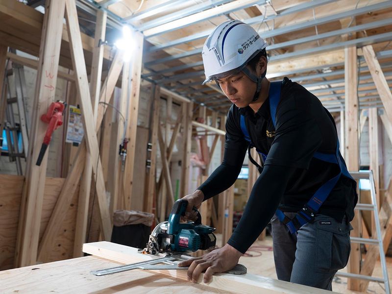 仕事内容 ============ ■建て方大工(チーム作業) 建物の「骨組み」をつくる、とても大切な仕事です。家や建物がしっかりと立つように、仲間と協力して組み上げていきます。 ≪主な作業内容≫ ●柱・梁の組み立て 建物を支える柱や梁を組み立て、強い土台をつくります。 ●屋根の棟上げ作業 建物の一番上に屋根を組み上げ、建物の形を完成させます。 ●構造用金物の取り付け 柱や梁をしっかり固定する金具を取り付け、安全で丈夫な建物にします。 - ■造作大工 建物の内側をきれいに仕上げ、暮らしやすい空間をつくる仕事です。 ≪主な作業内容≫ ●壁・天井・床などの内装仕上げ 部屋の中を整え、きれいで快適な空間に仕上げます。 ●階段や手すりの取り付け 安全に使えるように、階段や手すりを取り付けます。 ●ドア・窓枠などの建具取り付け ドアや窓の枠を取り付け、使いやすく美しい仕上がりにします。 ●収納棚・カウンターなどの造作物の制作・設置 暮らしに便利な棚やカウンターをつくり、設置します。 - 専門工種 希望者は以下の専門工種への配属も可能です! ●クロス工事(壁紙仕上げ) お部屋の壁に壁紙を施工し、快適で美しい空間に仕上げます。 ●タイル工事(壁・床のタイル貼り) 浴室や玄関などにタイルを施工し、耐久性とデザイン性を兼ね備えた仕上げを行います。 ●左官工事(モルタル塗り・下地仕上げなど) 壁や床の表面を整え、次の工程につながるしっかりとした基盤をつくります。 ●サイディング工事(外壁材の施工) 外壁材を取り付け、建物を雨風から守りながら外観を美しく整えます。 ●LGS工事(軽量鉄骨による下地施工) 壁や天井の骨組みを軽量鉄骨で組み、内装の基盤を形成します。 ●ボード工事(石膏ボード貼りなど) 骨組みの上に石膏ボードを施工し、部屋の形を仕上げます。 ●大工工事(柱・梁の組み立て、屋根の棟上げ、金物の取り付けなど) 建物を支える骨組みを組み立て、屋根を架け、金物でしっかり固定する重要な作業です。 ============ \キャリアパスとジョブチェンジ制度/ 当社では、一つの職種で技術を極めることも可能ですが、希望と適性に応じて他職種へのジョブチェンジも柔軟に対応しています。 ■キャリアパス例 ◎1年目:建て方大工の基礎研修 最初の1年間は、屋内のトレーニングセンターでの研修や現場実習を通じて、基本的なスキルを丁寧に習得。 未経験の方でも安心して始められるカリキュラムを用意しています。 ◎2年目以降:職種の選択・変更も可能 希望に応じて、大工・左官・タイル職など、他の専門職へジョブチェンジが可能です。 ・それぞれの職種ごとに研修制度を完備 ・マンツーマンでのサポート体制あり ・初めての職種でも段階的に技術を習得できます - \技術の向上に応じて給与もアップ!/ ・基本給の昇給 ・各種資格手当 ・役職手当の支給 \将来にわたるキャリア形成が可能/ 個人の能力や志向に応じて、現場職から管理職・教育担当へのキャリアアップも目指せます。 長期的に安定した収入を得ながら、自分らしい働き方を追求できる環境です。 \働きやすさもバツグン!/ “大工って大変そう…”そんな不安を当社は払拭! 働きやすい環境づくりにも力を入れているため、無理なく長く働けます! 【Point.1】完全週休2日制 建築業界では珍しい、土日休みの完全週休2日制を導入。お休みもしっかりとれるので、リフレッシュしながら働くことができますよ!年間休日も120日以上と、業界内でも高水準の休日数です♪ 【Point.2】月残業時間10時間以下 当社では、常にゆとりのある人員配置を行っているため、残業は少なめです。 残業が少なくなることで心身に余裕が生まれ、自然と現場全体にも思いやりのある雰囲気が広がります◎ また、未経験の方や新入社員の方にも、一つひとつ丁寧に指導しながら仕事を進められるのは、こうした余裕ある体制が整っている当社ならではの特長です。 【Point.3】道具一式支給 大工職に必要な工具類はすべて会社から支給します! 入社時に自分で購入する必要はありません。万が一破損した場合も無償で修理・交換いたします。