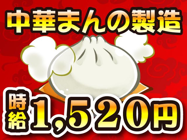 即日より順次/中華まん製造10名大募集/時給1520円/男女不問/未経験OK/即勤務可能な部署有