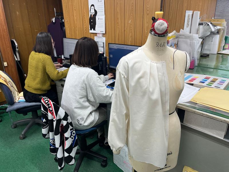 仕事内容: [婦人服製造卸業] で [営業及び生産] のお仕事です。 【主な仕事内容】 * クライアントとの打ち合わせ * ヒヤリング後の製品の企画提案 * 社内でイメージを共有しサンプル作成し見積書など書類作成 * サンプル納品、検討/クライアントの展示会 * 受注後の生産ラインへ発注/協力工場とやりとり * 量産品の納品 入社当初は先輩の同行及び生産フォローから学んでいきます。営業アシスタントが居ますので細かい業務や事務的な業務も常にサポートできる環境です。