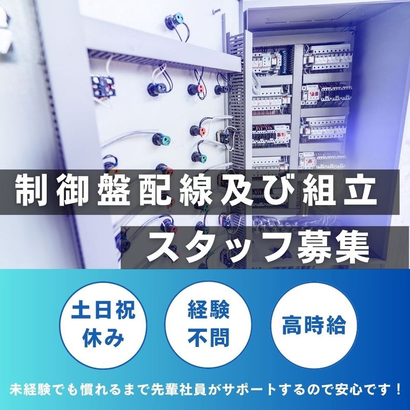 仕事内容 お仕事内容 制御盤の配線・組立作業を行っていただきます。 ハンダごてや電動ドリルなどの工具を使用しますが、未経験の方も大歓迎! イチから丁寧に育成・指導してもらえる環境なので、安心してスタートできます。 ここがポイント ・人気の日勤のみ! 夕方にはお仕事が終わるので、家族や友人との時間もたっぷり確保できます。 ・ 長期安定して働ける職場 長く続けたい方、大歓迎! 慣れるまでは先輩スタッフがしっかりフォローしてくれます。 安定企業で安心して働ける環境です。 ・ 職場見学OK! 実際の職場を見てから決められるので、納得してお仕事を始められます。 こんな方にもおすすめ ・モノづくりに興味がある方 ・コツコツとした作業が得意な方 ・手に職をつけて長く働きたい方 ・安定した職場で腰を据えて働きたい方 ・未経験からチャレンジしてみたい方