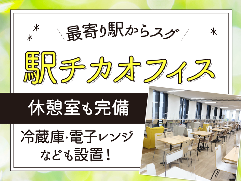 職場環境 周辺にはコンビニエンスストアやカフェが充実しており、ランチタイムにも困らない立地です。ビル内の休憩室には冷蔵庫や電子レンジ、ポットなどを完備しており、ゆったりリフレッシュ♪当センターでは、事務スキルを活かして活躍中のスタッフが多く在籍しています! 喫煙所:喫煙所あり(屋内) 受動喫煙防止措置:屋内原則禁煙(喫煙専用室設置)