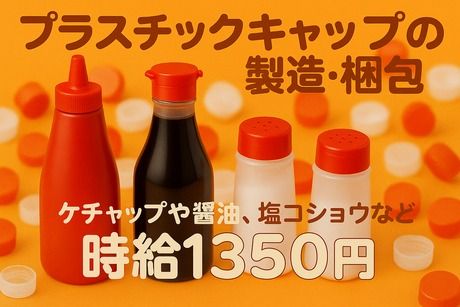仕事内容 \空調完備で快適×カンタン軽作業!/ プラスチックキャップの製造オペレーター・梱包スタッフ募集! 具体的には、 ケチャップや醤油、塩コショウなど、身近な商品のキャップ(蓋)を製造している会社なんです! 【お仕事内容】 ◆プラスチックキャップの製造オペレーター ・15~30kgの材料を機械に投入! ・あとは機械が自動で組立してくれるから安心♪ ◆梱包作業 ・完成品が段ボールに自動で入る! ・いっぱいになったら梱包してパレットに積むだけ◎ 【ここがポイント】 ・空調完備で年中快適な職場環境! ・幅広い世代(50代まで)のスタッフが活躍中! ・土日祝休みでプライベートも充実♪ ・未経験OK!しっかり丁寧にサポートします! 現場見学をしてからの就業となりますので、安心して新しいお仕事をスタートできますよ。