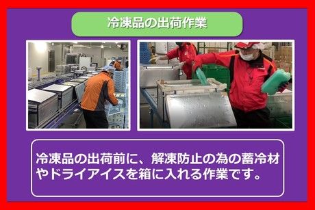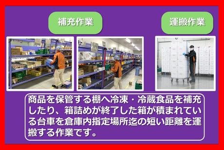 仕事内容 【私たちが行っている作業は・・・】 物流センターの中で「生協の宅配」でご家庭へお届けする冷凍・冷蔵食品の”箱詰め作業”を行っています。 今回、商品を箱に入れる「簡単ピッキング」や、棚への「商品補充」、台車での「商品運搬」などの軽作業のお仕事を募集しています。(重労働はナシ!) *冷凍ギョウザや納豆などスーパーなどの売り場で見るものばかりなので、扱う商品をイチから覚える必要はありません 【募集しているお仕事の具体的な内容は・・・】 ◆商品のピッキング(日中・夜間帯) ┗機械のランプの指示に従って、ベルトコンベアに流れてくる箱に冷凍・冷蔵食品を入れる流れ作業です *40cm四方の発砲スチロールの箱に冷凍・冷蔵食品を箱詰めして出荷します ◆棚入れ補充及び台車の運搬作業(日中・夜間帯) ┗商品を保管する棚へ冷凍・冷蔵食品を補充したり、箱詰めが終了した箱が積まれている台車を倉庫内指定場所迄の短い距離を運搬する作業です *箱は機械で台車に積みますので、手で積む作業等はありません ◆冷凍品の出荷作業(深夜帯) ┗冷凍品の出荷前に、解凍防止の為の蓄冷材やドライアイスを箱に入れる作業です 【お仕事の1日の流れは・・・こんな感じです】 *9:00~18:00勤務の場合 9:00 朝礼開始 9:10 ライン作業開始前の商品確認作業 9:30 ライン作業(ベルトコンベアの箱詰め作業)開始 10:30 休憩 10:45 作業再開 12:30 お昼休憩 13:00 作業再開 15:00 休憩 15:15 作業再開 18:00 勤務終了 【職場環境は・・・】 冷凍・冷蔵食品を扱う為作業場の室温は5度~10度程度ですが、防寒着は支給しますし、体を動かす仕事なので室温にすぐに慣れる方が殆どです◎ 【ここがポイント】 ◆幅広い年齢の方、Wワークの方が活躍出来るお仕事! ◆未経験で始めた方が多い職場です ◆3年前にオープンした、新しくてきれいで快適な物流センターです♪作業場やトイレ・休憩室もキレイ! ◆週1日から週5日迄勤務可能。勤務時間、曜日が選べる! *午前から、午後から、夕方から、23:00~、5:00~ *半日、フルタイム ◆お子様の学校行事のお休みOK! ◆内部販売制度あり ◆物流大手の安定した会社です(東証プライム上場企業) *「SBSゼンツウ」で検索 ◆富山西ICから車で3分。車、バイク、自転車通勤も可能!(駐車場完備)