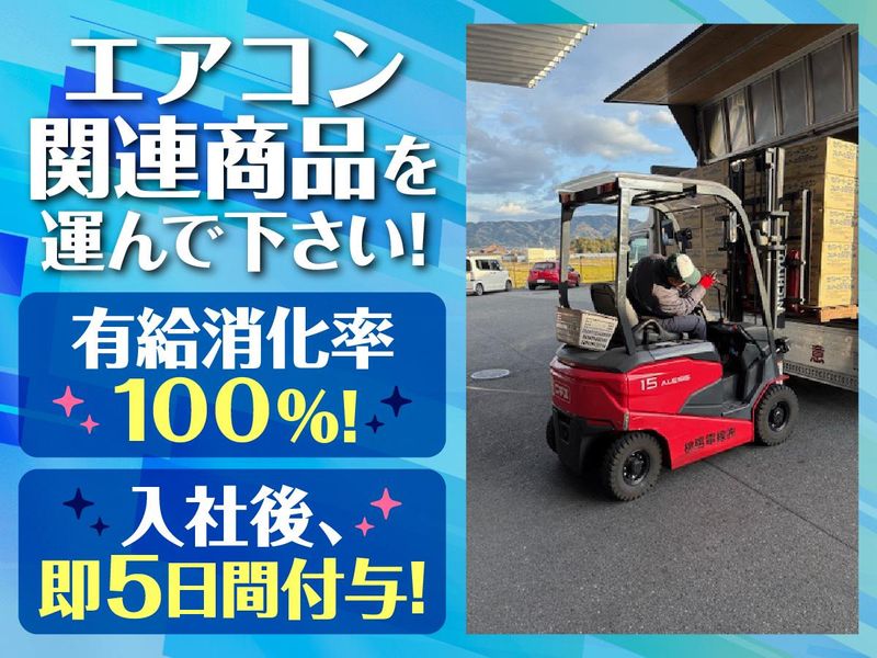 仕事内容 2025年に創業80年を迎えた桃陽電線(トウヨウデンセン)。 業績は年々右肩上がりで、配送ドライバーを増員いたします。 主な仕事内容は自社製品ブランドのエアコン関連部材や電設資材(電線・ケーブル:重量は10kg未満多々)を、 天理工場でピッキング作業や集荷を行い、八尾工場や協力工場などへ配送いたします。 尚、製品の積み込みにフォークリフトを使うケースがございます。 フォークリフト資格のない方は、全額会社負担でフォークリフト資格取得ができます! (スタッフ10名以上がフォークリフト無資格で入社されています) 残業は月平均10時間程度。年間休日は120日。 入社直後に5日間付与いたします(半年後に5日間追加) 公私ともに充実できる当社で一緒に働きませんか!