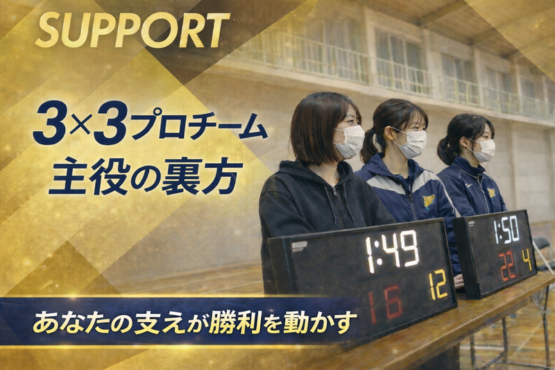 仕事内容 / バスケ経験を、チームの最前線で活かす。 3x3プロチーム帯同・サポートスタッフ募集 \ 部活・クラブ・社会人など、 これまでバスケットボールに関わってきた経験を、 実際のチーム現場で活かせる仕事です。 ━━━━━━━━━━━ 仕事内容 ━━━━━━━━━━━ 当社が運営する3x3プロバスケットボールチームに帯同し、 選手・チーム運営を支えるサポート業務をお任せします。 【主な業務内容】 ■ 練習への帯同(平日夜間/週3回程度) ■ 試合・大会への帯同(土日中心) ■ 練習・試合時の準備、片付け、運営補助 ■ 用具・備品の管理 ■ 遠征時のサポート業務 ■ 必要に応じた簡単な事務作業 ※業務の中心は、練習・試合など現場での帯同サポートです。 選手と同じ空間で、同じ目標に向かって動く。 チームの一員として、勝利と感動を支えるポジションです。 ━━━━━━━━━━━ 未経験の方も歓迎 ━━━━━━━━━━━ 特別な資格や専門スキルは必要ありません。 業務は先輩スタッフが丁寧にお教えします。 ・人を支えることが好きな方 ・チームスポーツが好きな方 ・バスケットボールの現場に関わり続けたい方 そんな想いをお持ちの方が活躍できる環境です。