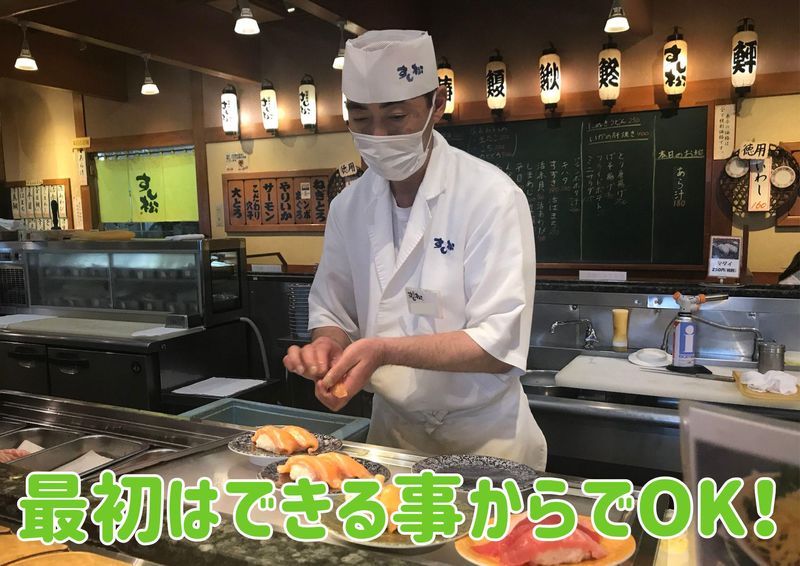 仕事内容 地元で愛される回転寿司「すし松」で、 新しい仲間を募集します! 常連さんも多く、 店内はいつも和やかな雰囲気。 少し慣れなかったり、 不器用だったとしても まずは「まじめ」に、「誠実」に 取り組んでくれれば大丈夫です! Point 1★ 家庭と両立しやすい、 柔軟シフト!  ̄ ̄ ̄ ̄ ̄ ̄ ̄ ̄ ̄ ̄ ̄ ̄ ̄ ̄ ̄ 「子どもが学校に行っている間だけ」 「扶養内で調整しながら」 そんな働き方も大歓迎です! 平日14時までの短時間勤務や、 週2・3日~の勤務もOK。 お子様の学校行事や急な発熱など、 急なお休みもみんなでフォローし合う 「お互い様」の精神が根付いているので、 気兼ねなく相談してくださいね。 Point 2★ 未経験・ブランクが あっても安心!  ̄ ̄ ̄ ̄ ̄ ̄ ̄ ̄ ̄ ̄ ̄ ̄ ̄ ̄ ̄ 最初は食器洗浄や軍艦巻きから。 具材を優しくのせるだけなので とってもカンタン。 「寿司屋のキッチン」と聞くと、 職人さんのイメージが 強くあるかもしれません。 実は機械化・自動化が進んでいて、 こんな作業が自動でできちゃいます。 今いる主婦パートさんは5~6年、 長い方だと開店当時から 続けてくださっているベテランさん。 あなたの不安な気持ちをよく理解して、 丁寧に教えてくれます。 焦らず、あなたのペースで 少しずつ慣れていけば大丈夫ですよ。 Point 3★ 主婦(夫)に嬉しい 待遇もいっぱい!  ̄ ̄ ̄ ̄ ̄ ̄ ̄ ̄ ̄ ̄ ̄ ̄ ̄ ̄ ̄ なんといっても自慢は、 毎日仕入れる新鮮なネタで作る 「絶品まかない」! 食費が浮くのは嬉しいポイントと 好評です♪ 他にも、売上目標達成で全員にもらえる 「大入手当」や、交通費全額支給など、 頑張りがきちんと返ってくる待遇をご用意しています。 【具体的なお仕事内容】 ・洗い場での皿洗い ・簡単な調理補助