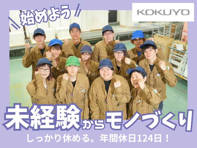 仕事内容 29歳以下のポテンシャル人材積極採用中! ━━━━━━━━━━━━━━━━━━━ ノートで有名!コクヨでの家具製造 デザイン性に優れたオフィス家具を作ろう ━━v━━━━━━━━━━━━━━━━ ≪ ポイント ≫ ✓未経験歓迎(従業員は未経験入社がほとんどです) ✓既卒・第二新卒歓迎(新卒と同じ研修が受けられます) ✓年間休日124日以上 ✓マニュアル完備 ✓車・バイク・自転車通勤OK ・・・・・・・・・・・・・・・・・・・・・・・・・・・・・・・・・・・・・・ ≪ 仕事内容 ≫ オフィス空間の印象を左右するパーティション・間仕切りと、収納に欠かせないキャビネットの製造をお任せします。 ※適性を見て「板金加工」「塗装」「組立て」「出荷・ピッキング」のいずれかのセクションに配属します。 「板金加工」 ➡鉄板の型抜きや折り曲げなどの加工 「塗装」 ➡製品の塗装業務 「組立て」 ➡パーツごとに作られた製品の組立て 「出荷・ピッキング」 ➡製造した製品・建材の出荷手配 ・・・・・・・・・・・・・・・・・・・・・・・・・・・・・・・・・・・・・・ ≪ 未経験から挑戦!安心して働けます ≫ カンタンな業務から徐々にステップアップしていただけます。 マニュアルも完備。 製品知識からキャリアまで、働く上で不安を感じないようにしっかり教えます。 未経験から手に職がつけられます! ➡資格取得は会社が全面バックアップ。 (クレーン・玉掛け・フォークオペレーターなどが取得可能です) ・・・・・・・・・・・・・・・・・・・・・・・・・・・・・・・・・・・・・・ ≪ こんな先輩が活躍中 ≫ モノづくりが好きなメンバーが集まっています。 ショールームでも、自分たちが作った製品の仕上がりをチェック。 クオリティを追及しています。 社員A:”出社したくなるオフィス作り”に関われることが楽しいです。 社員B:設備トラブルへの対応など、製品を効率的に生産できる環境を維持する仕事をしています。「製造現場をコントロールしている」という感覚がやりがいです。 ・・・・・・・・・・・・・・・・・・・・・・・・・・・・・・・・・・・・・・ ≪ コクヨのオフィス家具 ≫ Campusノートで有名なコクヨが、オフィス家具を製造しているって知っていますか? コクヨ芝山工場では、パーティションとキャビネットを製造しています! 学生をワクワクさせるCampusノート、大人をワクワクさせるオフィス家具。 楽しい時間、居心地の良い空間を提供しています。 あなたもその「ワクワク」の創り手となりませんか?