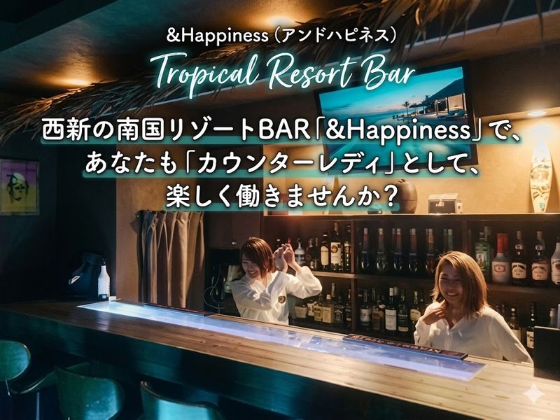 アピールポイント: ≪西新にある小さな南国リゾートBAR♪≫ &Happinessの店内は、 まるで南国リゾートのような おしゃれで落ち着いた癒し空間。 やわらかい照明とリラックスできる雰囲気で、 初めて来た方も「居心地がいい」と感じる あたたかいお店です。 バタバタした感じではなく、 ゆったりした時間が流れる 落ち着いたカジュアルBARです。 ≪完全自由出勤制だから、働き方もあなた次第♪≫ 「本業が終わってからちょこっとだけ」もOK! 「今日はしっかり稼ぎたい」ももちろんOK! ▼例えばこんな働き方も… ・明日朝早いから、今日は1~2時まで ・休み前だから、22時~ラストまでしっかり ・本業が遅く終わる日は、23時・24時からゆっくり出勤♪ ≪自由度MAXでストレスフリー★≫ バイトスタートのタイミングもあなたの都合で大丈夫◎ 「今やっている事が終わってから始めたい」 「仕事が落ち着いてから少しずつ慣れたい」 そんな相談も大歓迎! 「とりあえず1週間だけ」や「来月からゆっくり始めたい」も全部OK! プライベートを大切にしながら、自分のペースで働けるので Wワークや副業にもピッタリです♪ ナイトワークが初めての方も、ムリなく安心して始められますよ♪ &Happinessは、スタッフ同士も仲が良くて、 自然体でいられるアットホームなお店。 あなたも一緒に、楽しく働いてみませんか?
