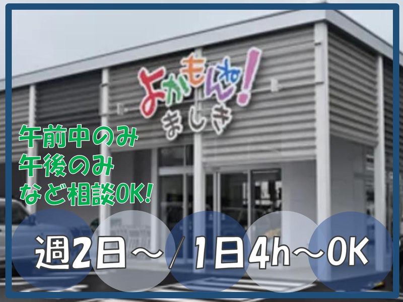 仕事内容 ==================== 【 求人のポイント 】 ⭐ 週2日~/1日4hの短時間勤務 ⭐ 「平日のみ」「土日のみ」 「午前のみ」「午後のみ」等の働き方OK! ⭐ まずはお試し短期勤務も可能! ==================== スーパーよかもんね!ましき 惣菜部門スタッフを大募集✨ 【 お仕事内容 】- \\ 調理業務はありません!! // スーパーのバックヤード(裏方)で、 「盛り付け」「パック詰め」中心の シンプル作業をお任せします。 ✅ お惣菜のパック詰め ✅ ラベル貼り、値付け ✅ 商品陳列 ✅ 機械でラップに包む など - <具体的な作業ステップ> (1) キッチンで完成したお惣菜 (唐揚げ、サラダ、お弁当など)を マニュアル通りにトレーに盛り付け (2) 機械にセットしてラップ (3) 値段のシールを「ペタッ」と貼る (4) 完成した商品を売り場に並べる ✅ 揚げ物・焼き物などの調理 ✅ 油仕事や、重い鍋洗い ⇒ こういった作業は一切ナシ! これだけのカンタン作業です! 「料理はニガテ…」という方も 全く問題ありません! 空調完備の室内で快適に働けます◎ まずは仕事の流れから丁寧に お伝えしますのでご安心ください✨ ====================