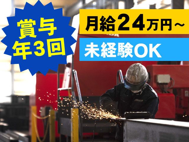 仕事内容 ◆新着‼ 新規求人‼◆ 無資格・未経験でスタートできます! 正社員、工場内作業スタッフの募集です。 \ アピールポイント / ・賞与年3回 ・月給240,000円~270,000円 ・資格取得制度(全額費用会社負担) ・未経験者OK、ブランクOK 経験・スキル問いません。 ・20代、30代の男性活躍中! ・経験・資格活かせます。 玉掛け・フォークリフト等 実務経験者歓迎! ━━━━━━━━━━━━━━━━━━━ 【 主な業務内容 】 建築用鋼材(H形鋼)の切断・穴あけ・ 開先加工の機会オペレーター等 各種工場内作業をお任せします。 【入社後の流れ/フォロー体制】 入社後:鋼材の種類・お客様の名前を覚えるところから始めて頂きます。 ↓ 入社~3ヶ月程度:主に機械操作・クレーン作業・安全確認・危険予測など、 先輩がしっかり指導しサポートします。 (3ヶ月経ったら任せきりではなく成長速度に応じて対応していきます) 不明点は随時フォローします。 ━━━━━━━━━━━━━━━━━━━ <若い世代活躍中> 現在、20代・30代の男性スタッフが活躍中! 社員の平均年齢は35歳で、 先輩社員も「誰しも最初は未経験だから」と 温かく成長を見守ります! <福利厚生充実> 社会保険完備、昇給・賞与、 各種手当等、勤務するスタッフさんが、 安心して働いていただく為に 待遇・福利厚生に力を入れています。 ━━━━━━━━━━━━━━━━━━━ 気になる方下記ホームページをチェック‼ https://www.bantei.jp/ ━━━━━━━━━━━━━━━━━━━ ↓他のお仕事情報はコチラ↓ https://entori.jp/bantei スマホからは URLを長押し選択、「リンクを開く」で ご覧ください ━━━━━━━━━━━━━━━━━━━ まずはご応募下さい‼ お電話にてお問合せだけでもOKです‼︎ 採用に関するお問い合わせは 下記までご連絡ください。 ↓ ↓ ↓ ↓ ↓ 番貞鋼材株式会社 TEL:027-268-4521 採用担当まで ━━━━━━━━━━━━━━━━━━━ <先輩たちの職歴> 製造/物流/工場内作業/ 倉庫管理/倉庫内作業/物流倉庫 建設/建築/土木/警備/造園/ 施工管理/ドライバーなど さまざま ━━━━━━━━━━━━━━━━━━━ <歓迎> ・新卒/第二新卒 ・Iターン/Uターン/Jターン ・ハローワークユーザーの方
