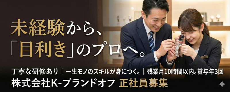 仕事内容 「ブランドが好き」「人と話すのが得意」──そんなあなたへ。 2025年にオープンした新宿店で、お客様との“駆け引き”や“査定力”を武器に、収入もキャリアも磨ける環境です。 相場感や会話力、信頼を得るスキルなど、“商売の力”が身につきます。 高額ブランド品の販売・買取を通じて、世界中のお客様と向き合う仕事です。 査定や価格交渉を通して、“あなた自身”の価値も磨かれます。 ■ ブランドアイテムの接客販売・査定・買取 バッグが中心(ルイ・ヴィトン、シャネルなど) 時計・ジュエリー・高級ブランド品も多数 商品管理・売場構成・ディスプレイにも関わります。 【特徴・ポイント】 ・2025年オープンの新店舗でスタートできる ・接客×商売力で収入もスキルもUP ・未経験から査定スキル習得→年収400万円超 ・東京の生活コストも安心!賞与年3回/実績4.5ヶ月分 ・グローバルに活躍できる新宿三丁目駅チカ店舗 <入社後の流れ> 【STEP1】販売・接客スタート ブランド知識、商品説明力、対応スキルをOJTで学習。 【STEP2】査定研修(専任トレーナー付き) 真贋・市場相場・状態判定などを基礎から学べます。 【STEP3】査定デビュー 社内テスト合格でカウンターに。半年〜1年で多くのメンバーが活躍中。 【新宿店の強み】 ・2025年新規オープンの店舗で、一緒に成長できる環境 ・観光・ビジネス・買物の中心地「新宿三丁目駅」至近 ・高価格帯商品多数(バッグ・時計・ジュエリーなど) ・外国人観光客/富裕層/目利き常連が来店 ・商業激戦区ならではの“スピード感と駆け引き力”が身につく ・語学対応できるスタッフも活躍中(英語・中国語など) 【スタッフ構成】 年齢層:20代中心 男女比:男性3割・女性7割 チームワーク重視で、新人もなじみやすい雰囲気です。 【キャリアパス】 一般スタッフ → 査定担当 → 店長・バイヤー 将来的には本部職(採用・教育・バイヤー)へのキャリアも可能