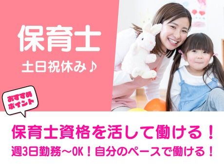 <★保育士資格必須!>高時給1,500円!週3日から勤務OK!土日祝休みでプライベートも充実♪