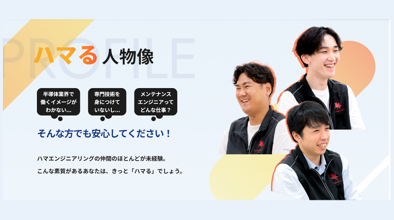 アピールポイント: 【✨5つの圧倒的な強み✨】 ①【年間休日134日】業界でも珍しい多さ 4勤2休+シフト休で 平日も土日もバランス良く休める。 → 趣味・旅行・家族時間も確保可能。 ②【賞与年3回+手当が異常に多い】 ・賞与:年3回 ・住宅手当:最大4万円 ・深夜・残業手当:1分単位で全額支給 ・資格手当:最大6万円 ・引越費用:100%会社負担 「働いた分、確実に収入に反映」 ③【未経験から“一生モノの技術”が身につく】 半導体は AI・EV・スマホ・自動運転… すべての未来産業に必須。 一度身につけた技術は ・景気に左右されにくい ・全国どこでも通用 ・将来も需要がなくならない = 手に職×安定の最強組み合わせ ④【研修中も正社員&給与100%支給】 座学 → 実技 → OJT 工具の使い方から指導 マニュアル完備&チーム作業 「未経験前提」で育てる会社 社会人デビュー・異業種転職も安心。 ⑤【若手が辞めにくい=定着率が高い】 有給取得率:88.7% 育休取得率:78.6% 20〜30代中心の職場 ノルマ・営業なし 条件がいいからこその定着率◎