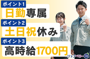 【15名以上の増員募集】入寮OK!高時給1700円!冷暖房完備♪月収30万円以上可能!CDP派遣スタッフ活躍中♪日勤専属!土日祝休み!自動車通勤OK!飯能駅&東飯能駅から無料送迎バスあり!