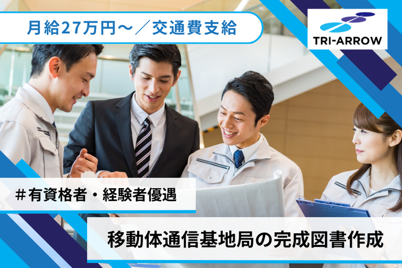 求めている人材 【応募資格】 必須スキル ・移動体通信基地局工事における完成図書作成経験 ・基本的なPCスキル(Excel、Word) こんなあなたにおススメ! ・長年の通信業界の経験を活かして、もう一度現場で活躍したいと考えている方! ・通信インフラを支える裏方の仕事に、やりがいを感じたい方!