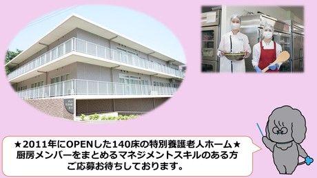 【埼玉県川口市】特別養護老人ホームでの厨房責任者を募集しています!福利厚生充実◎長く働ける環境です!