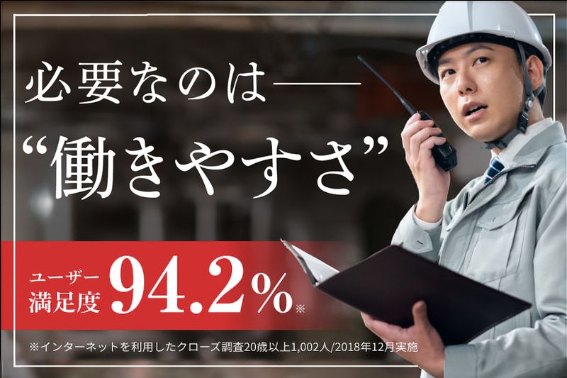 企業PR ■□ 定着率約90%!安心して働ける職場 □■ 通勤時間や休日、転勤の有無など、 ライフスタイルに合わせた 最適な案件をご提案します。 月1回の面談でモチベーション維持と 不安解消を支援する手厚い体制だから、 安心して長く働けます。 ■□ 上場企業のグループ会社で安心! □■ ・建築技術者在籍数3,961名 (昨年から931名の大幅増) ・資格取得支援制度あり ・豊富な求人数で給与、勤務地、経験などの 希望条件にマッチした仕事探しが可能! *数字は2025年3月期第1Qの数値です