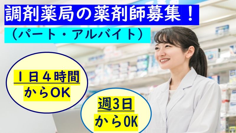 【アピールポイント】 調剤薬局の薬剤師募集! ■経験者歓迎! ■週3日から可! ■1日4時間から可!