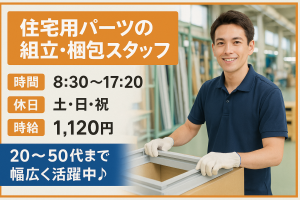 インフォメーション 未経験から始められるお仕事です。大手メーカー勤務で安定して長く働けます。土日祝休みでプライベートも充実 私たちヤギヌマ流通サービスは社名にもある 「流通」という言葉の通り、総合流通サービスを 目指し運送会社からスタートしました。 現在では「労働者派遣事業」「職業紹介事業」 「製造・業務請負事業」「旅行事業」「不動産・ レンタルスペース事業」と多業種にわたり事業を 展開しております。 創業から変わらず全ての事業に共通するのが 「人」であり、“人”に活かされ、“人”を活かす 企業でありたいと考えております。 これからも時代の変化に柔軟に対応し、 あらゆる方々の可能性を引き出し、 働きがいのある就労の機会を提供するとともに、 お客様から喜ばれるサービスの提供をモットーに 挑戦し続けて参ります。 アピールポイント 気軽に見学OK。 実際の作業風景や作業内容を確認してから安心してスタートできます。 世界に展開する大手メーカーで、安定して長く働ける職場です。 自分力バロメータ 責任感 理解力 協調性