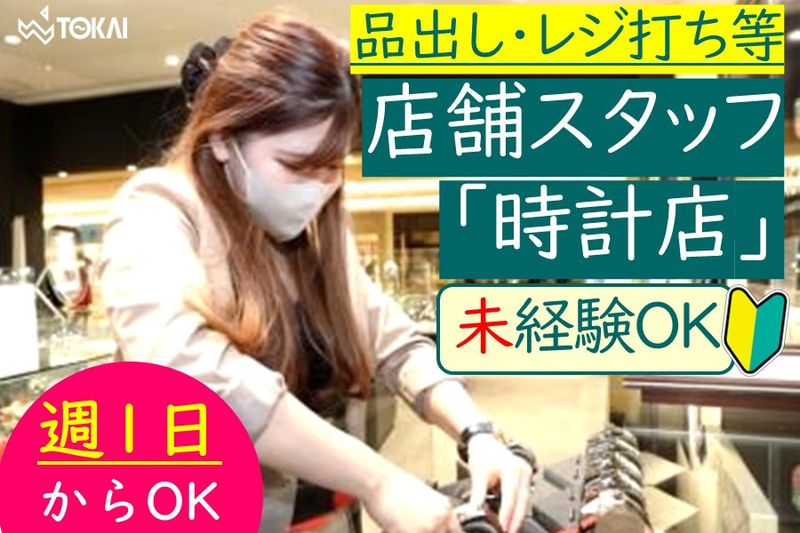 【アピールポイント】 トレンドからブランドまで人気商品を取り扱う時計店の店舗スタッフ ●週1日からOK! ●未経験、ブランクのある方歓迎! ●自社製品割引制度あり!