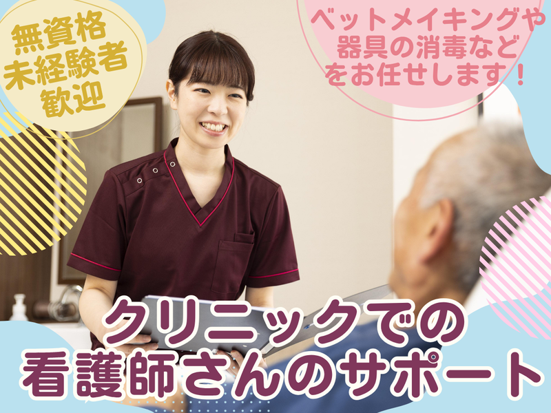 仕事内容 ・✦✨看護サポートスタッフ募集 ✨✦・ ⏩駅チカ⭐鶴川駅徒歩1分! ⏩未経験歓迎!無資格OK! ⏩将来の介護に役立つ知識が身に付く◎ ⏩1週間の研修制度あり .:。+.:。.:。+.:。+.:。.:。+.:。+.:。:。+.:。+ < お仕事内容 > 人工透析専門クリニックにて、 看護師のサポート業務をお任せ♪ ✅看護師さんの補助業務 ❒ベッドメイキング ❒医療機器の消毒 ❒患者さまの介助(入退室のお手伝い) ❒看護師の補助業務 ✅事務作業 ❒備品管理・在庫管理 ❒事務作業 などをお任せします! ╲ ✨未経験大歓迎✨ ╱ 現在活躍中のスタッフのほとんどが 未経験からスタートしています! 入職後は本部での研修(1週間)に加えて、 現場でのOJTもあり、安心して働けます! また、職種変更なしなので、 1度覚えてしまえば簡単です♪ .:。+.:。.:。+.:。+.:。.:。+.:。+.:。:。+.:。+ ✨働きやすさ抜群!柔軟シフト! 家庭やプライベート優先でOK! 働き方の相談にも柔軟に対応しています。 ライフスタイルに合わせて調整可能です♪ ✨主婦(夫)・フリーター歓迎 家事や育児と両立しながら働く方も多数! 年齢問わず活躍できる職場です♪ 久しぶりのお仕事復帰も歓迎♪ ✨制服ありだから、お仕事が終わった後の ご予定にもそのまま行けます♪ .:。+.:。.:。+.:。+.:。.:。+.:。+.:。:。+.:。+ \\ ⭐1日のスケジュール⭐ // ⏰08:15~ 出勤・清掃・透析準備 ⏰08:40~ 朝礼・患者対応・介助・消毒 ⏰10:30~ 午後受入れ準備 ⏰11:00~ 昼食・遅番出勤 ⏰12:30~ 入替え対応・消毒・介助 ⏰15:00~ 翌日準備(布団交換など) ⏰16:00~ 退室対応・消毒・ゴミ回収 ⏰16:30 退勤、おつかれさまでした♪ .:。+.:。.:。+.:。+.:。.:。+.:。+.:。:。+.:。+