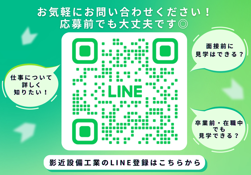 【保険制度】 雇用保険、労災保険、健康保険、厚生年金 待遇・福利厚生 【福利厚生】 【社会保険】 健康保険、厚生年金保険、雇用保険、労災保険 【福利厚生】 ・資格取得支援 ・制服貸与(スカート、パンツ選べます) ・育児短時間勤務制度あり(子どもが小学生になるまで) ・在宅勤務相談OK(事前申請、家庭事情により相談可能です) → 例えば…子どもの急病や学級閉鎖の際に在宅勤務できるよう 1年単位の事前申請をしておく仕組みがあります◎ ・財形貯蓄・退職金・企業年金制度 \他にもちょっと自慢の福利厚生いっぱい/ ・豪華すぎるビンゴ大会(神戸牛1年分、フグ、アレクサ、Apple Watch…) 自宅のゲーム機は全てビンゴ大会の景品という強者も…(笑) ・リゾートホテル会員制度(家族宿泊OK) 全国の「リゾートトラスト エクシブ」施設を特別料金で利用可能。鳴門・有馬・京都・淡路島・箱根・軽井沢・蓼科 ほか全国各地 ・表彰・報奨制度あり 工事部門の現場表彰制度(報奨金支給) 全社員対象の優秀社員賞・社長賞もあり ・快適なオフィス 本社、東一条ビルは京都市内。スタイリッシュなオフィス家具を使った空間で、 2画面モニターや必要な機材を備えています。 ===== \ブランクOK/家庭と両立しながら長く働く! \転勤なし/バス停徒歩2分の好立地 ー 【募集背景】 ー 影近設備工業は創業75年以上、 京都で水・空気といった街のインフラを支える 設備工事を一貫して手がけてきました。 景気に左右されにくく、無借金経営&自己資本比率80%超の安定基盤。 今回は先を見据えた総務部門の体制強化のための増員募集です。 ブランクがあっても、子育てしながらでも大丈夫。 “超安定企業”で会社に欠かせないサポートのプロとして活躍しませんか? 「でも、どんな雰囲気の会社なのか不安…?」 ──────────────────── // そんなあなた、 一度職場見学に来てみませんか? \\ 影近設備工業で働く魅力を詳しくご説明します。 社員の雰囲気、現場のリアルを体感してから決めてもOKです。 ▶【応募する】約1分で完了! ▶【採用公式LINE】https://line.me/your-link ▶【TEL】075-752-1240 お気軽にお問い合わせ・ご応募くださいね♪