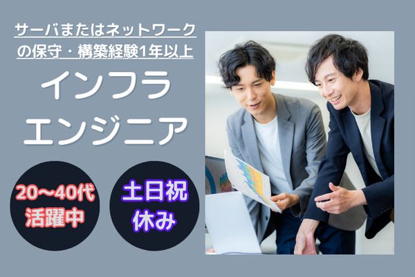 20代~40代活躍中【インフラエンジニア】サーバまたはネットワークの保守・構築経験1年以上の方│月給33万円以上+業績連動賞与|リモート案件有