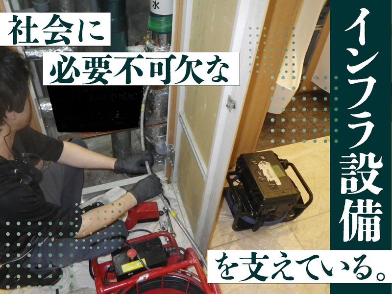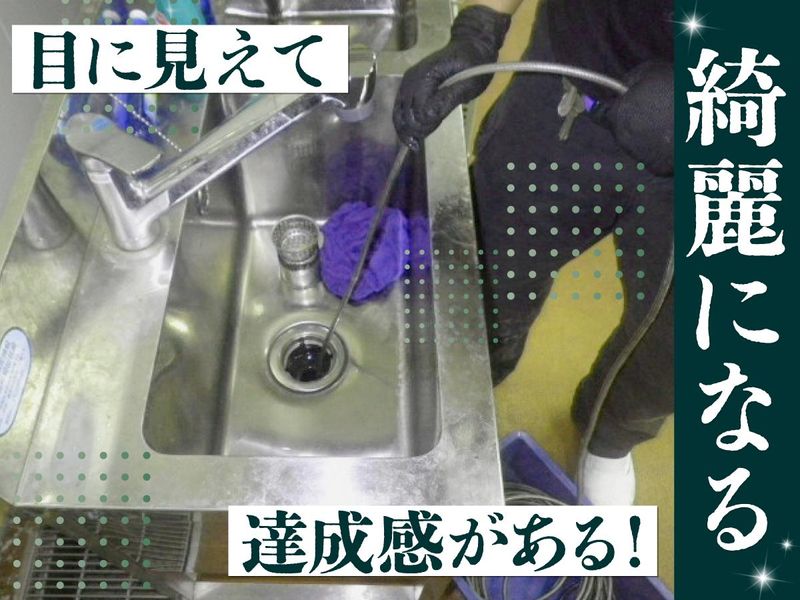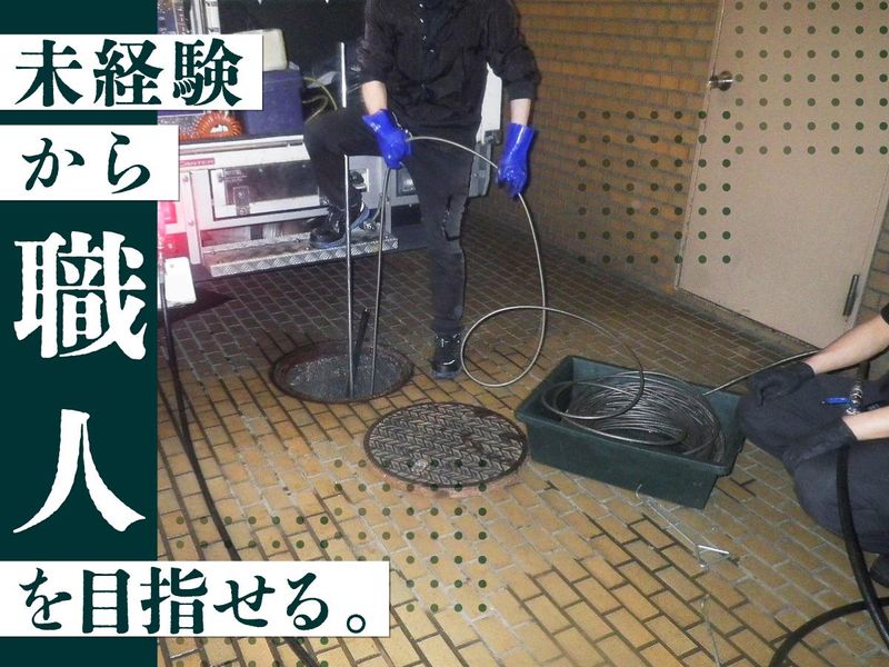 仕事内容 ====================== AIでは替えがきかない、 人の技術と丁寧さが求められています! ====================== 商業施設や飲食店などの 「排水管」「マンホール」などを 高圧洗浄機や内視鏡カメラを使って 清掃するお仕事です。 普段は見えないところで“水の流れ”を守る、 まさに社会のインフラを支える仕事。 清掃後は自分の手でキレイにした結果が 目に見えるので、毎回大きな達成感を 味わえます。 <この仕事の魅力> ✅社会に必要とされる安定業界! 景気や流行に左右されず、 将来も安心して働けます。 ✅チームで動くから未経験でも安心! 道具の名前を覚えるところからスタート。 先輩が丁寧に教えるので、 初めてでも確実に成長できます。 力仕事もほとんどありません! ✅日本の清掃技術は世界基準! 精密で丁寧な作業は「日本ならでは」と 評価され誇れる仕事です。 ✅達成感のある仕事! 清掃後に水がスムーズに流れる瞬間は “目に見える成果”。 毎回、自分の仕事の価値を実感できます。 ✅将来は独立も目指せる技術職! 排水管・排水設備清掃は専門性が高く、 一度身につけた技術は一生モノ。 希望者には独立に向けた技術指導や ノウハウ共有も行っています。 独立後は仕事をお願いすることもあり、 “職人として長く活躍できる道”が開けます。 <ある1日のスケジュール例> 21:00 集合 22:00 現場到着 22:30 作業開始ミーティング 作業開始 24:30 休憩 01:00 作業再開 03:00 終了 <未経験・異業種からの転職大歓迎> 「一つの仕事をじっくり覚えていきたい」 「人の役に立つ仕事をしたい」 そんな想いがある方にぴったりです。 長く腰を据えて働きたい方、 ぜひお待ちしております!